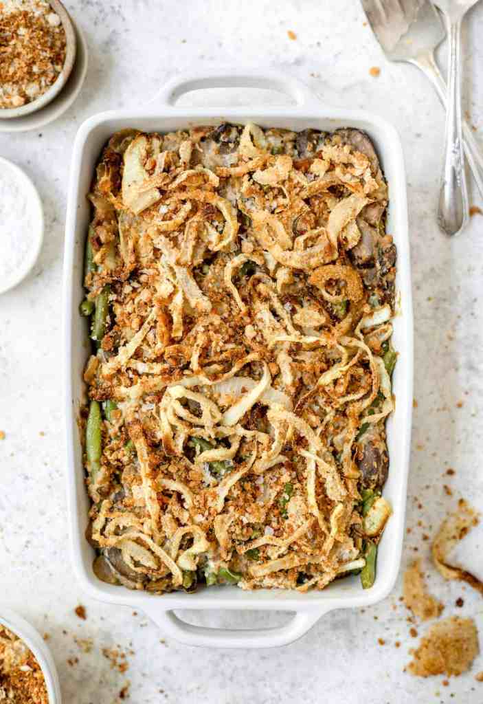 If you’re looking for a more traditional Green Bean Casserole, here is a good recipe. It is a bit more work, but hey, again, it’s the holidays. This recipe sounds so good, I may make it for Thanksgiving! If you’re making all the dishes yourself – opt for the easier dish, but if you’re bringing a side dish, this one gets my vote. – NOTE – I make Ezekiel breadcrumbs and keep them on hand, and you could use them in this recipe. Also, I would use whole wheat flour, because we are trying to keep our recipes healthy!