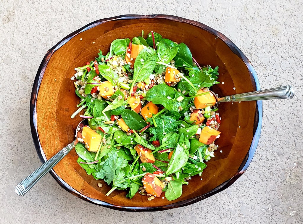 This salad is meant to be a powerhouse of plant based iron that will be easily absorbable. To increase absorption, plant based iron needs vitamin C. If you change the ingredients – make sure the iron content stays high and the vitamin C does as well.