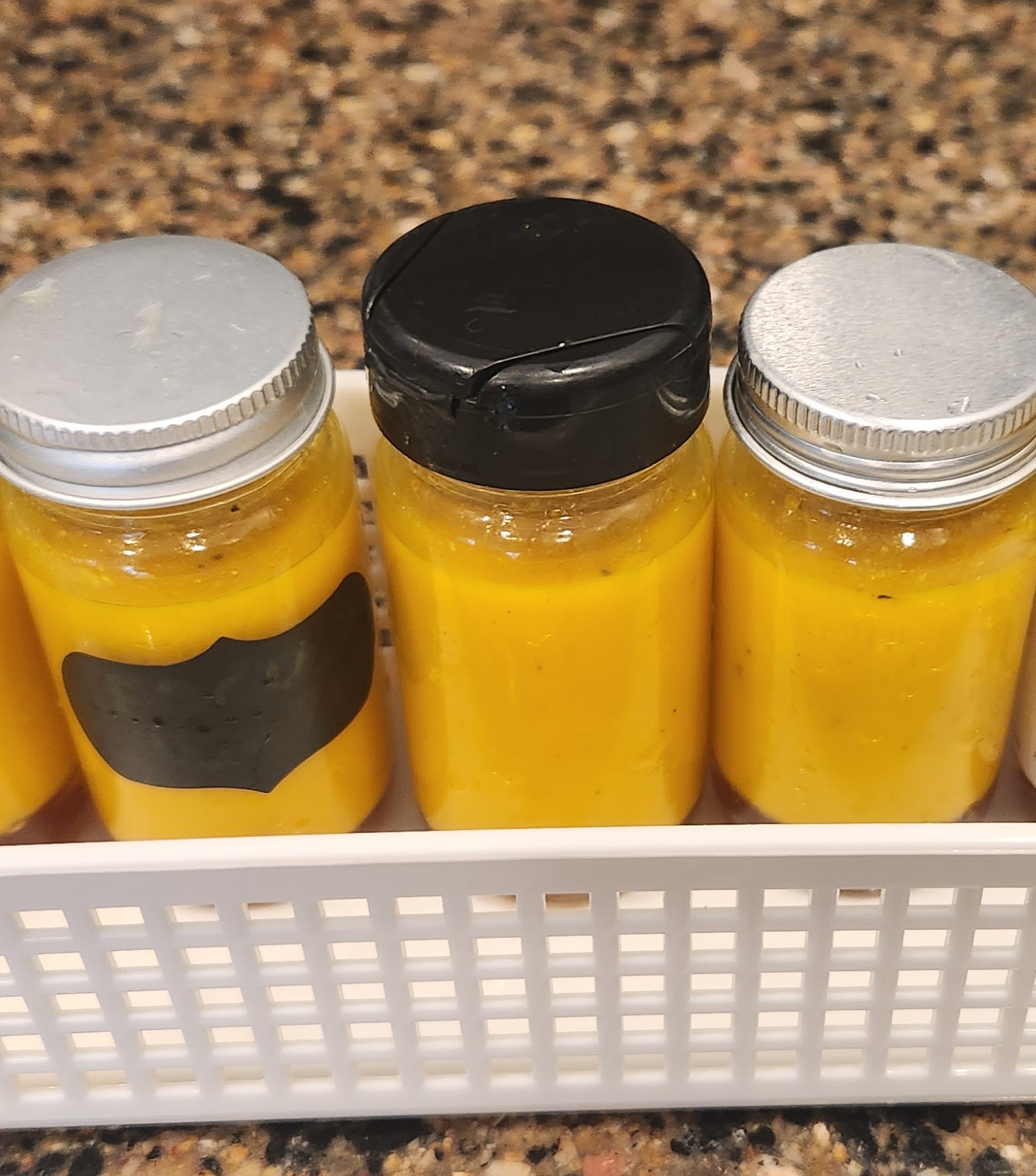 - Pour the juice into 7 small jars (reuse spice jars)