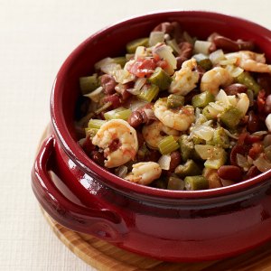- Stir in beans, okra, thyme, oregano, salt, pepper and Worcestershire sauce.