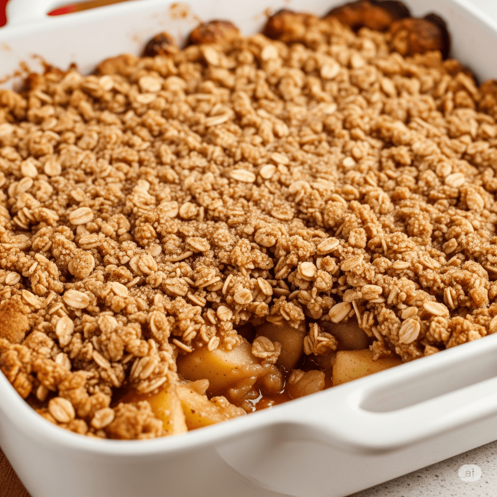 - Bake for 50 minutes to 1 hour (uncovered) or until the filling is bubbly, the apples are very fork tender (especially in the center of the dish), and the topping is deep golden brown.
